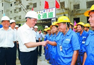 李克強來到正在建設(shè)中的管莊保障性住房項目,看望并慰問一線建筑工人、技術(shù)人員和管理人員,鼓勵他們精心施工、把好質(zhì)量關(guān),把這一重大民生工程建設(shè)好,讓群眾住得安心、舒心。遠(yuǎn)洋地產(chǎn)行政總裁李明在現(xiàn)場向李克強匯報了項目進(jìn)展情況。