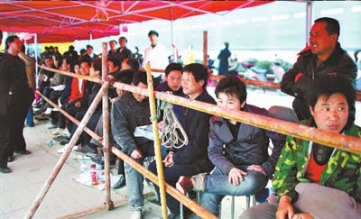 記者詢問幾位排隊的農(nóng)民工:“你們排隊拿號是自己買房嗎?”他們說,是受買房人之托排隊拿號的。排隊—天—夜可以拿到300元的辛苦費。由于要熬—通宵,所以都穿上了厚厚的夾衣。( 記者梁超)