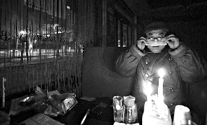 由于停水停電無暖氣,陸大任只能去附近居民家借水,并用爐子燒蜂窩煤取暖。前日,蜂窩煤爐也被相關(guān)管理部門收走。陸大任現(xiàn)在24小時(shí)在店里,天冷,他就穿上厚厚的軍大衣和棉褲。