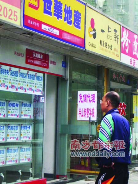 剛看到世華地產(chǎn)彩田村分行門口“免傭代理半山御景華庭”的告示時(shí),記者還以為是二手樓,因?yàn)橹挥匈I二手房才需要付給中介公司傭金。采訪之后才知道,原來“免傭”的說法是相對中介公司而言的!耙话銇碚f,在中介公司放盤的都是二手房,交易達(dá)成后中介向賣方雙方各自收取房款1.5%的傭金,而現(xiàn)在我們這里放盤的半山御景華庭是一手新樓,我們作為中介代理方帶客戶過去購買,對買家是不收取任何中介費(fèi)用的,而是開發(fā)商給予我們傭金提成!痹摰赇伣(jīng)紀(jì)人陸先生解釋道。
