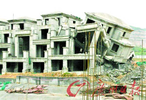 受金融風暴影響,東莞虎門一樓盤建筑面積約600平方米的大戶型別墅出現銷售困難的窘態(tài)。為盤活市場,該樓盤前兩日開始將一套已完成整體框架結構的大戶型別墅拆除,預計要拆除類似別墅共15套。