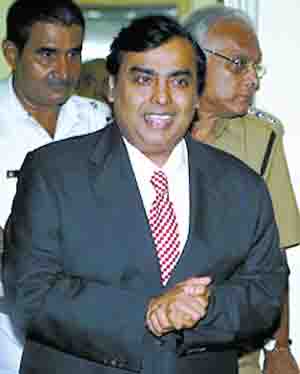 圖:身價430億美元、在福布斯榜上名列第5的印度富豪穆凱什·安巴尼。由其掌控的信實集團把握著印度諸多經(jīng)濟領(lǐng)域的命脈,2002年時該財團的總資產(chǎn)相當(dāng)于印度GDP的3.5%。圖片來源:北京晚報