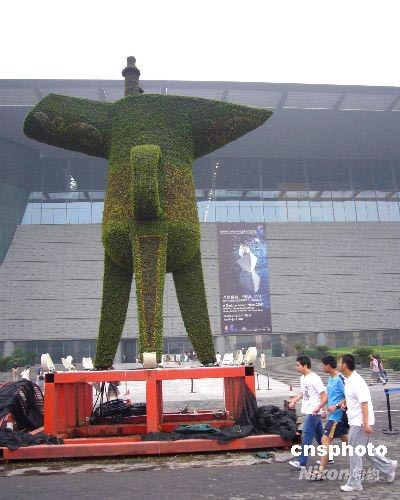 6月29日,一尊高約8米的 “巨鼎” 亮相北京長安街頭。這尊“巨鼎”是由綠色植被塑成的,為即將到來的北京奧運會增添了獨特的韻味,吸引過路行人側目。 中新社發(fā) 玉龍 攝