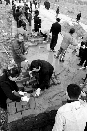 昨日下午,大興區(qū)舊宮親親我家小區(qū)內(nèi),上百名業(yè)主在小區(qū)東南門砌墻、挖路,以此向開發(fā)商抗議。