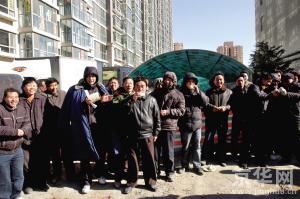 昨天上午8點(diǎn)30分左右,百余名工人圍堵在豐臺(tái)區(qū)右安門外大街56號(hào)院的鼎立水岸家園門前,禁止小區(qū)業(yè)主出入。工人們稱,因拿不到工資,無錢回家過年才封堵大門。