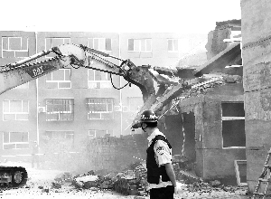 最后,在確定房間內(nèi)無人無物的情況下,機(jī)械設(shè)備將五排連體二層住宅小樓中的一棟全部拆除、四棟部分拆除。直到中午十一點(diǎn),執(zhí)行工作基本完畢。