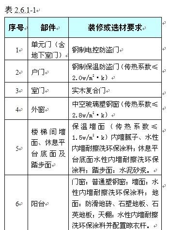 2.6.1公共租賃住房室內(nèi)按照環(huán)保、耐用、經(jīng)濟的原則,裝修一次到位。裝修標(biāo)準(zhǔn)不低于表2.6.1-1標(biāo)準(zhǔn)。