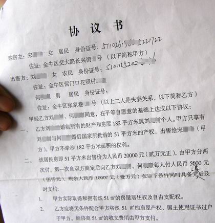 記者問,“聽說這套房子已經(jīng)漲成4300元/平方米了。”“漲成4300元/平方米了?我不知道!這是人家的事,與我無關(guān)!绷_勇凜然地說:“既然事前已經(jīng)說好了,雖然房子名義上是我的,但我只會要那1萬塊錢,不想多要!”