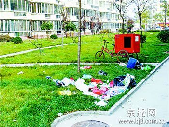 記者昨天上午11時(shí)趕到華龍?jiān)繁崩镄^(qū),發(fā)現(xiàn)小區(qū)門口沒(méi)有一個(gè)保安,任何人都可以隨便進(jìn)出小區(qū)。更意外的是小區(qū)里很少見(jiàn)到垃圾桶,草坪上隨處可見(jiàn)居民亂扔的垃圾。