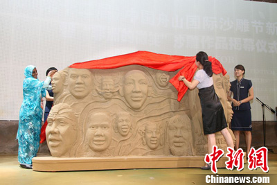 中新網(wǎng)上海8月31日電(見習(xí)記者 倪幼杰 通訊員 倪立剛)今天,上海世博會(huì)非洲聯(lián)合館再添一具“龐然大物”——“非洲的微笑”微縮版沙雕墻。據(jù)悉,該沙雕墻高1.5米,長為3米,所用沙子均來自非洲撒哈拉沙漠和中國舟山海灘。