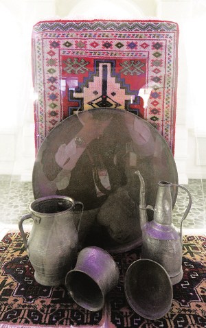 走進(jìn)展館,仿佛置身于首都巴庫的老城區(qū)——內(nèi)城。阿塞拜疆是人類最古老的定居地之一,巴庫古城至今完整保留著修建于12世紀(jì)的汗王宮殿建筑,被稱為“內(nèi)城”,擁有迷宮般的狹窄巷道,景致如畫。
