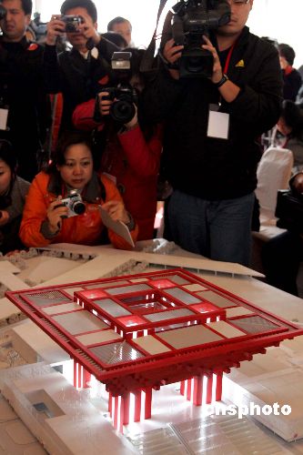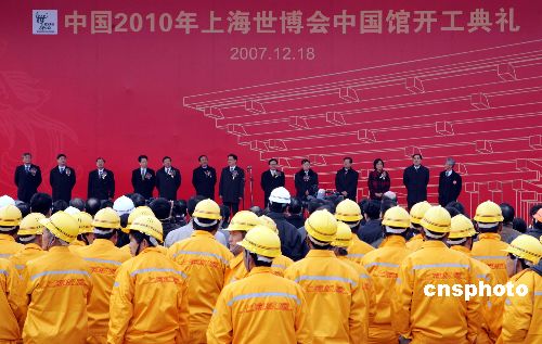 十二月十八日,凝聚全球華人智慧的中國二0一0年上海世博會(huì)中國館在上海黃浦江畔舉行開工典禮。據(jù)介紹,作為上海世博會(huì)的永久性場館之一,總用地面積為六點(diǎn)五二公頃,總預(yù)算十五億元人民幣。整個(gè)中國館區(qū)由國家館、地區(qū)館、港澳臺(tái)館等三個(gè)部分組成。中新社發(fā) 潘索菲 攝