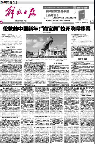 “當時從謝斯百瑞大街到廣場滿是人,從中午12點到下午5點結束,統計數字是10萬人次。2004年到2005年也是10萬多人次,2006年和2007年超過20萬人次,到2008年達到30萬人次,今年又比去年增加5萬多。有意思的是,觀眾90%是倫敦本地市民和歐洲游客! 鄧柱廷翻開筆記本對記者介紹。