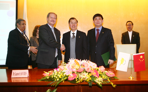 上海市政府副秘書(shū)長(zhǎng)、上海世博局局長(zhǎng)洪浩與塞浦路斯展區(qū)總代表塞維帝斯閣下(Dr.Lazaros S. SAVVIDES)簽署合同,2010年上海世博會(huì)中國(guó)政府總代表華君鐸會(huì)簽合同。上海世博局副局長(zhǎng)黃健之出席簽約儀式。