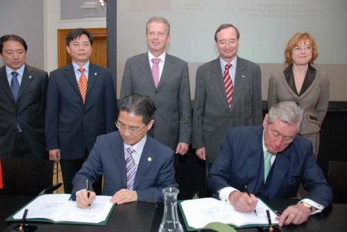 奧地利當(dāng)?shù)貢r(shí)間3月30日,上海市政協(xié)副主席、中國2010年上海世博會(huì)執(zhí)委會(huì)副主任周漢民出席了奧地利共和國簽署上海世博會(huì)參展合同的簽約儀式暨奧地利國家館設(shè)計(jì)方案揭曉儀式,與奧地利展區(qū)總代表安德羅什博士(Dr. Androsch)共同簽署了參展合同。奧地利成為第193個(gè)與上海世博會(huì)組織者簽署參展合同的參展方。