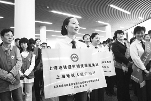 今天上午,上海地鐵命名首批“迎世博”先進及志愿服務(wù)隊標兵,命名儀式在人民廣場站換乘大廳舉行。