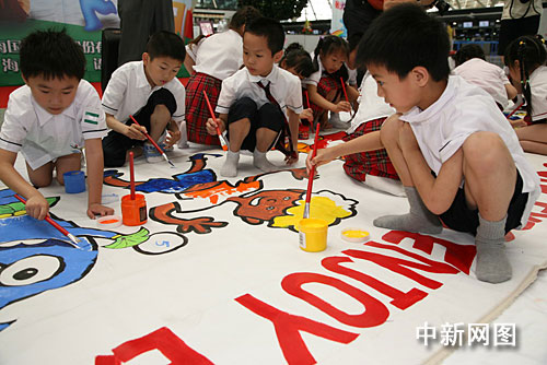這是浦東機(jī)場(chǎng)積極響應(yīng)上海市文明辦“小手牽大手,共養(yǎng)好習(xí)慣”雛鷹世博文明行動(dòng)的號(hào)召,舉辦的“歡樂(lè)童心迎世博”社會(huì)公益活動(dòng),共邀各國(guó)少年兒童關(guān)注世博、了解世博,參與世博,分享世博。