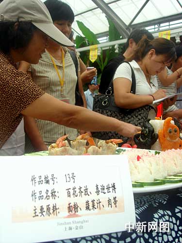 比賽現(xiàn)場(chǎng),方糕、麻球、眉毛餃、菜塔餅……一道道色、香、味俱全的江南特色小吃在農(nóng)村新天地里擺開(kāi)了擂臺(tái)。不少來(lái)此旅游觀光的游客,在品嘗了這些原汁原味的江南傳統(tǒng)小吃之后,還不禁躍躍欲試、一試身手,與金山的巾幗美食高手們一起互動(dòng)競(jìng)秀。此外,由美食巧匠們制作的一組演繹上海世博會(huì)主題的創(chuàng)意小吃作品,表達(dá)了金山姐妹喜迎世博的美好心情。