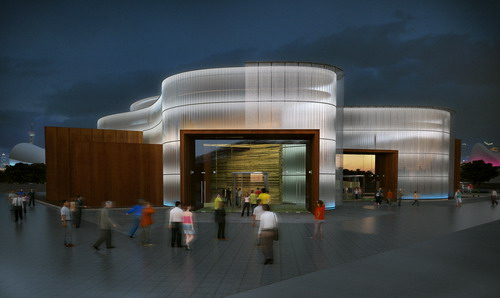 據(jù)智利館的全程服務(wù)商上海美術(shù)設(shè)計公司副總經(jīng)理王海利介紹,智利館的設(shè)計理念是一個呈波浪般起伏的水晶杯,又有大海中航船的意象。在造型復雜的鋼 結(jié)構(gòu)和玻璃墻之外,覆有特制的鋼絲網(wǎng),加上大面積的屋頂花園,可起到遮陽節(jié)能的作用。