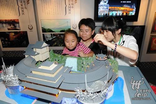 一位老人帶著他的小孫女在貴州館模型前仔細觀賞,“孩子你看,這個是黃果樹瀑布,這個是苗族女孩子在節(jié)日里穿的衣服,這個是……”老人表示,這是一個很好的機會,帶孩子來了解一下自己年輕時工作的地方,也讓她能夠多增長一些世博知識。更重要的是,貴州可以說是他的第二故鄉(xiāng),前來參觀也是為了對貴州參展表示支持。