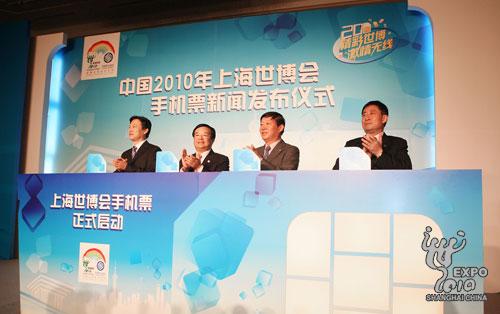 10月13日,在上海世博會倒計時200天之際,上海世博局和中國移動公司聯(lián)合宣布,世博歷史上“首創(chuàng)”的世博會手機(jī)票即將面世。屆時,用戶帶上一部手機(jī)暢游世博園將從愿景變成現(xiàn)實。上海市副市長艾寶俊,上海市政府副秘書長、上海世博局局長洪浩,工信部科技司副司長李力,上海市經(jīng)信委主任王堅,上海通管局局長姚士成,上海世博局副局長陳先進(jìn),中國移動集團(tuán)副總裁李正茂等出席世博會手機(jī)票新聞發(fā)布活動。