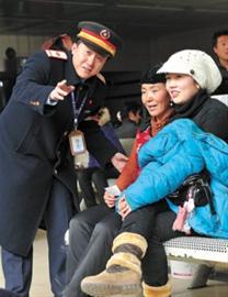 “您好,有什么需要為您服務的嗎?”在鐵路上海站售票大廳的 “程薇服務臺”,全國用戶滿意服務明星從上珠正熱情招呼著一位70多歲的老人。老人想要了解從上海開往香港九龍的列車時刻表,從上珠很快從電腦中調(diào)出資料,給了老人滿意的答復。從上珠告訴記者,老弱病殘孕等重點關(guān)注人群在他們這里購票后,如需相關(guān)的接送服務,他們會與設(shè)在進站大廳的 “張慶桓服務臺”聯(lián)系,由工作人員負責護送到候車室,并向所搭乘列車的列車長進行告知,給予特殊照顧。