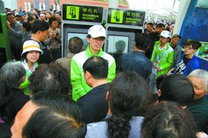 “請(qǐng)問(wèn)中國(guó)館預(yù)約點(diǎn)在哪里? ”今天上午9:00,記者從上南路六號(hào)口走進(jìn)世博園區(qū),耳邊不時(shí)傳來(lái)一陣陣詢(xún)問(wèn)聲。世博園區(qū)內(nèi)的廣播不斷播音道:“中國(guó)館參觀(guān)需要全程預(yù)約,請(qǐng)參觀(guān)者提前去預(yù)約!弊哌M(jìn)園區(qū)的參觀(guān)者紛紛向身邊的志愿者、服務(wù)中心工作人員求助,詢(xún)問(wèn)預(yù)約機(jī)的地點(diǎn)。