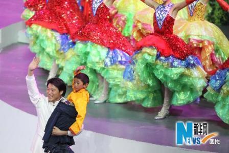 兩位來自青海玉樹地震災(zāi)區(qū)的藏族小朋友也在這時(shí)出現(xiàn)在了舞臺(tái)上。他們與三個(gè)三口之家走到一起,五個(gè)孩子手拉著手,深情地緊緊擁抱。舞臺(tái)上的演員們“心手相連”,表達(dá)了人類必須團(tuán)結(jié)一心相互支撐、攜手面對(duì)未來一切挑戰(zhàn)的寓意。