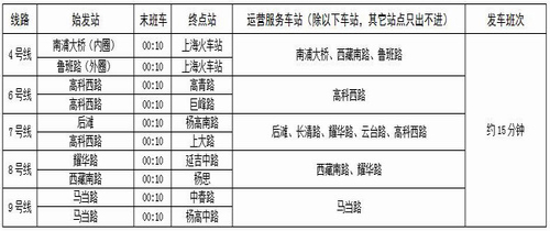 軌道交通4、6、7、8、9五條涉博線路在常規(guī)末班車后,將在世博園周邊站點加開加班列車,除重點涉博車站以外,其他途經車站只可下客出站,不可進站上客和換乘。加開列車末班車時間為0:10,運營間隔約為15分鐘一班。具體車站的首末班車時間還可查看各車站公告、至上海地鐵官網(/) 進行查詢或撥打地鐵服務熱線64370000進行詢問。