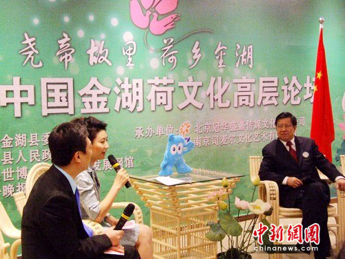 本屆論壇是第十屆中國金湖荷花•美食節(jié)的高端活動(dòng)之一,借助世博會(huì)的平臺(tái),讓荷文化作為金湖的形象大使,牽手世博,走向國際,發(fā)展金湖。論壇一改過去嘉賓輪流上臺(tái)發(fā)言的設(shè)計(jì),采用央視訪談欄目的場(chǎng)景設(shè)計(jì)和節(jié)目流程,由央視名嘴陳偉鴻、王小丫現(xiàn)場(chǎng)主持。出席論壇的嘉賓們?cè)谥鞒秩说囊龑?dǎo)下,聯(lián)系金湖發(fā)展和各自實(shí)際,圍繞“荷”氣生財(cái)論經(jīng)濟(jì)、以“荷”為媒說規(guī)劃和政通人“荷”談民生三大論題進(jìn)行現(xiàn)場(chǎng)訪談。