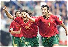 雖然自從1966年以來,葡萄牙隊(duì)僅僅3次打進(jìn)過世界杯決賽圈,而上一次是在1986年,雖然他們?cè)谑澜绫瓪v史上最好戰(zhàn)績(jī)也僅是1966年的第三名,但這這個(gè)國家卻從來不缺少天才球星。葡萄牙歷史上最成功球星"黑豹"尤西比奧,不知在他的那個(gè)時(shí)代令多少足球?qū)I(yè)人士所折腰,F(xiàn)在,那批在1989年和1991年連續(xù)兩年取得世界青年足球錦標(biāo)賽冠軍,被稱為"黃金一代"的球星們也已經(jīng)成長(zhǎng)起來。費(fèi)戈剛剛當(dāng)選世界足球先生,而他的同胞魯伊-科斯塔也在意大利賽場(chǎng)書寫著自己的輝煌。