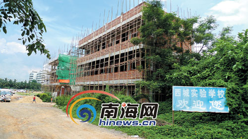 昨天下午,記者趕到這2棟3層樓所處的位置看到:這2棟3層樓的違建建在?谀虾4蟮篮P沔(zhèn)新村西城實驗學(xué)校的門口,與海秀鎮(zhèn)政府相鄰。目前這2棟房子的主體已完工,工人們還搭著腳手架對樓房的外墻及室內(nèi)進(jìn)行粉飾裝修。