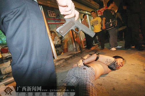8月3日晚,南寧市西鄉(xiāng)塘警方共出動50名民警和100名保安,在明秀東路一帶展開了一次大規(guī)模的掃黃行動,共清查9間“掛羊頭賣狗肉”的涉黃發(fā)廊,抓獲涉嫌賣淫嫖娼人員26人,繳獲兩支仿真手槍。