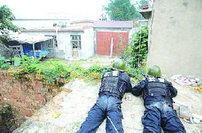 天亮后,警方開始采取行動。經對環(huán)境的縝密勘察,在院落的東、東南和西、西南四個方向的制高點分別設置狙擊點,以武警4名狙擊手為主,采用狙擊步槍和自動步槍封控大院。兩名武警突擊隊員在罪犯藏匿的房頂上,用磚頭砸開玻璃,而后向兩個房間內投入4枚催淚彈,逼犯罪嫌疑人出屋。公安刑警7人,利用武警趁黑在院門配房南墻挖開的缺口處進入院內,迅速前出,實施抓捕。