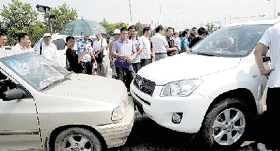 “兩車相撞后,豐田車司機跳下來,大聲對我說,他在洛陽報警多次,說他家里有毒品,可洛陽警方一直不理他。他跑到鄭州,找公安廳找不到,就在這里撞車!