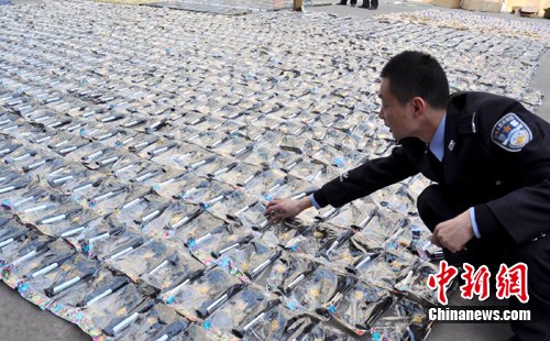 中新網(wǎng)重慶11月4日電(劉興敏)重慶云陽縣警方4日通報(bào)稱,該縣公安民警搗毀了一個批發(fā)銷售仿真槍的窩點(diǎn),仿真槍銷售者現(xiàn)已被拘留。
