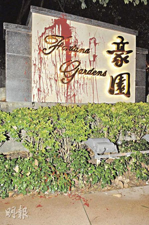 中新網(wǎng)7月6日電 據(jù)香港明報(bào)報(bào)道,住有多名名人的香港老牌豪宅“豪園”,門外兩個(gè)大門牌5日凌晨遭人淋潑紅油,更被貼上多張寫有同一人名的追債紙張。屋苑保安其后巡經(jīng)發(fā)現(xiàn)報(bào)警,警方正調(diào)查案件是否與工程公司或住客等有關(guān)。