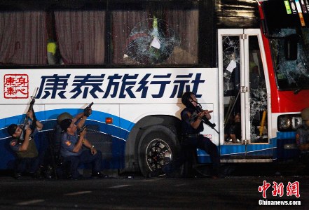 至傍晚時(shí)分,旅游巴士曾試圖向前開,但被警察開槍打爆輪胎,以阻止其移動,事件即時(shí)轉(zhuǎn)趨緊張。現(xiàn)場傳出多次槍聲后,被挾持的旅游巴司機(jī)乘亂逃出。當(dāng)?shù)匾欢葌鞒鱿ⅲ溉栽谲嚿系?5名人質(zhì)已全部被殺。