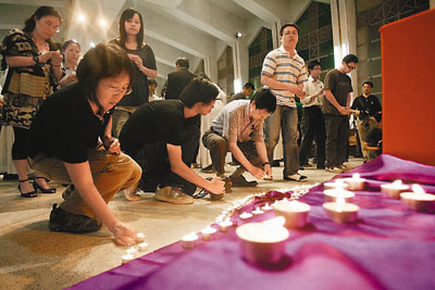 中新網(wǎng)8月27日電 據(jù)香港文匯報(bào)報(bào)道,挾持人質(zhì)事件中舍身救妻的梁錦榮雖已壯烈犧牲,但其英勇行為備受港人敬佩,其母校伍華中學(xué)26日晚為他舉行追思會(huì),除了一眾故友外,行政長(zhǎng)官曾蔭權(quán)伉儷及不少與他素未謀面的市民都特意參與向他作最后致敬。生前好友盛贊花名“牛榮”的梁錦榮為人率直、有承擔(dān)、樂(lè)于助人,希望故友安息、梁妻及其子頌學(xué)能夠振作,重過(guò)正常生活。