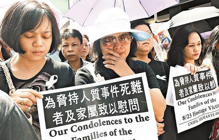 中新網(wǎng)8月30日電 據(jù)香港星島日報(bào)報(bào)道,香港特區(qū)立法會各政團(tuán)發(fā)起“悼念菲律賓遇難港人”大游行的同時,多個菲律賓團(tuán)體二十九日上午也舉行祈禱會表達(dá)哀傷,聚集近四百人,悼念馬尼拉挾持人質(zhì)事件的死難者。菲律賓傭工協(xié)會發(fā)言人表示,菲律賓人與港人一樣對事件感到哀傷和憤怒,要求當(dāng)局徹查事件。