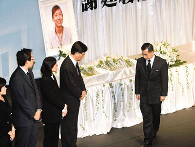 康泰旅行社昨晚在葵青劇院為謝廷駿舉辦“我們永遠(yuǎn)懷念您—謝廷駿追思會(huì)”。追思會(huì)分為兩部分,先接待800名謝家家屬、好友、旅行社員工;之后開(kāi)放予1000名冒雨出席的公眾人士,香港署理行政長(zhǎng)官黃仁龍、勞工及福利局局長(zhǎng)張建宗等多名官員出席向謝廷駿致意。