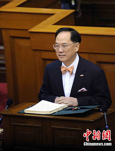 中新社香港10月13日電(記者 周志彬)香港特區(qū)行政長(zhǎng)官曾蔭權(quán)13日在特區(qū)立法會(huì)發(fā)表題為《民心我心 同舟共濟(jì) 繁榮共享》的2010/2011年度施政報(bào)告。