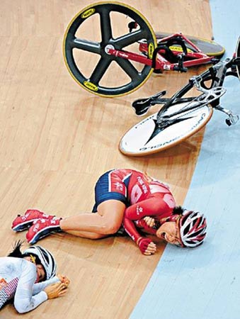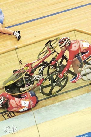 中新網(wǎng)11月17日電 據(jù)香港《星島日?qǐng)?bào)》報(bào)道,廣州亞運(yùn)女子場(chǎng)地記分賽,出現(xiàn)振奮人心的一幕。有“女版黃金寶”之稱的香港自行車選手黃蘊(yùn)瑤,向世人示范了什么才是鋼鐵意志,她在比賽中段遇上嚴(yán)重意外,身體更被單車兩度輾過,但仍堅(jiān)忍肋骨骨折及肺氣腫傷痛繼續(xù)比賽,終為香港取得一面“血淚銀牌”。頒獎(jiǎng)后須坐輪椅離場(chǎng)的黃蘊(yùn)瑤不時(shí)激動(dòng)痛哭,令全場(chǎng)所有人動(dòng)容。