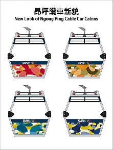 纜車將在除夕當(dāng)天重開,新形象已率先曝光。香港昂坪360董事總經(jīng)理張少華介紹時指出,纜車車身重開時將換上不同色彩,以大自然為主題,其中以代表海洋及天空的藍(lán)色、代表樹林及草叢的綠色為主要色調(diào),還有車廂會換上代表山嶺的暗紅色和代表落日的橙黃色。