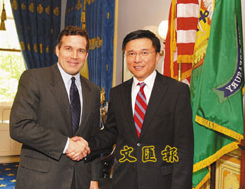 陳家強(qiáng)剛結(jié)束與多名美國(guó)官員的會(huì)談,包括美國(guó)聯(lián)儲(chǔ)局主席伯南克和負(fù)責(zé)國(guó)際事務(wù)的美國(guó)財(cái)政部副部長(zhǎng)麥考密克。陳家強(qiáng)表示,他和伯南克討論了次按危機(jī)給全球造成的持續(xù)影響,但沒(méi)有直接詢問(wèn)聯(lián)儲(chǔ)局未來(lái)會(huì)否繼續(xù)減息。