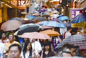 內(nèi)地自由行客來澳,喜歡到商場購物。某大型百貨公司負責人指出,收緊政策后,人流減少2%,但不排除與連月不斷下暴雨有關(guān),加上商場6月先后有減價活動,故對生意額影響輕微。他強調(diào),倘以去年6月生意額作比較,今年同月則錄得升幅。
