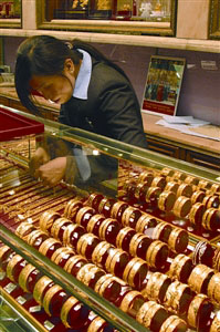 內(nèi)地收緊自由行,珠寶首飾貴價品銷情同受影響,連鎖金飾店負責人指出,自由行收緊后,6月起生意額即見下跌,起碼跌二至三成。一般而言,內(nèi)地客購買珠寶首飾,廣東客消費力稍遜北方客,前者人均消費額有三四千元,后者則達五六千元,主要看購買的貨品類別而定。