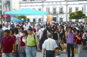 圖:澳門中區(qū)街道人流不息。(圖片來(lái)源:澳門日?qǐng)?bào))