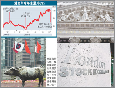 該媒體引述富時Mondo Visione的報(bào)告稱,在金融海嘯下,歐美的交易所市值急挫,港交所與巴西交易所的市值則在近月大幅回升,目前最大市值的交易所為美國的CME集團(tuán)(芝加哥期貨交易所),第二便是港交所,第三是德國交易所,第四為巴西交易所,倫敦交易所只占第十位。