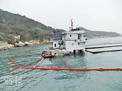 肇事內(nèi)地貨船長約30多米,上周五(1月29日)擱淺后不斷入水下沉,3日剩下駕駛室及船弦在海面上,船四周被隔油網(wǎng)圍著,中間仍見烏黑的油漬漂浮,兩艘海事處油污處理組船只及小艇在附近清理油漬。